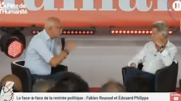 Partagez l'article !Décidément, cette fête de l’Humanité a été riche en rebondissements ce week-end. Après l’irruption de très courte durée du jeune gilet jaune, Ritchy Thibault au début du débat entre l’ancien premier ministre et Fabien Roussel, secrétaire national du PCF, qui a dénoncé la présence d’Edouard Philippe, un montage vidéo tiré de ce grand … Lire la suite de (Vidéo) Overdose de tutoiements entre Edouard Philippe et Fabien Roussel : deux larrons en foire à la fête de l’Humanité ?