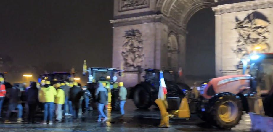 Après avoir remonté les Champs-Élysées, des tracteurs occupent la place de l’Arc de Triomphe, encerclée par un dispositif policier absolument grotesque. Des renforts paysans continuent de converger à Paris.