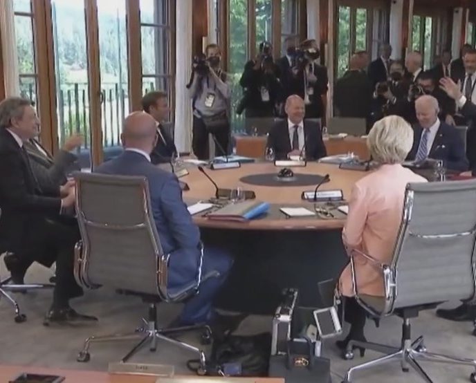 Société (Vidéo) « Nous devons leur montrer nos pectoraux » : les dirigeants du G7 se moquent ouvertement de Poutine devant les caméras Les membres du G7 étaient réunis ce dimanche 26 juin en Allemagne. Et le moins que l’on puisse dire, c’est que l’ambiance était relativement détendue, très éloignée de l’actualité jugée dramatique par la plupart des grands médias concernant la guerre en Ukraine. « Nous devons leur montrer nos pectoraux », « On enlève ou on laisse la veste […]