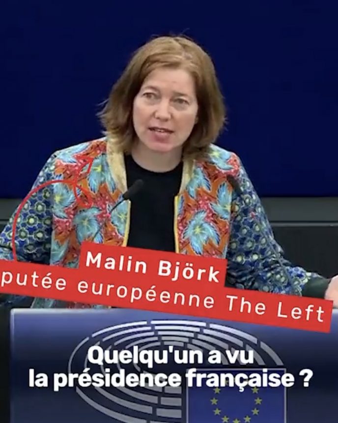 Société (Vidéo) Malin Björk, eurodéputée: « Ho ! Ho ! Ho! Quelqu’un a vu la présidence française ?? » « Nous voulions juste parler de la démocratie et de l’État de droit, mais ils ne sont même pas là, malheureusement. Alors si vous les voyez, dites-leur de venir. Ce serait bien » L’eurodéputée Malin Björk de Die Linke a pris la parole au Parlement européen de façon très étonnante pour dénoncer l’absence dans l’hémicycle de la […]