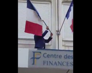 (Vidéo) Florian Philippot monte sur le toit du centre des impôts de Forbach pour jeter le drapeau européen