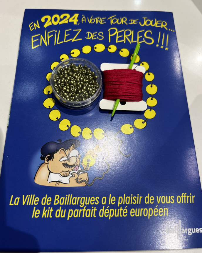 Pour 9975,42 € par mois, les députés européens enfilent-ils des perles ? Il semblerait que le maire de Baillargues dans Hérault, Jean-Luc Meissonnier ait donné sa réponse dans sa carte de voeux en ce début d’année 2024. « En 2024, à votre tour de jouer…. Enfilez des perles!!! La ville de Baillargues a le plaisir de vous offrir le kit parfait du député européen ». Ce drôle de fascicule […]