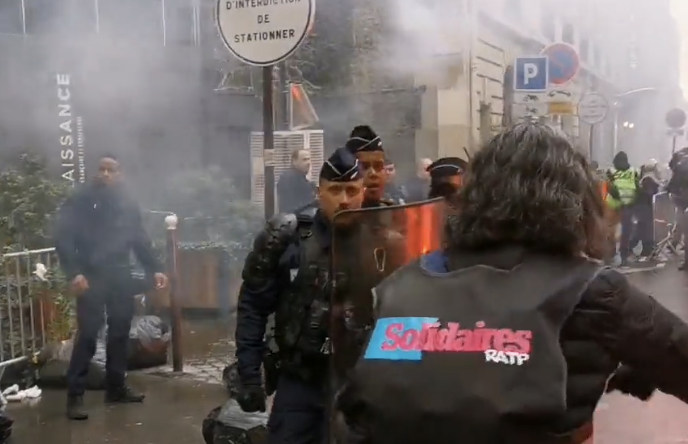 Société (Vidéo) Des syndicalistes jettent des poubelles devant le siège de Renaissance et s’affrontent à la police Ce mardi 14 mars, des centaines de syndicalistes en interprofessionnel rassemblés à la gare Saint Lazare ont décidé d’aller devant le siège du parti d’Emmanuel Macron, Renaissance, situé à quelques encablures de là. Sur place, des poubelles ont été jetées devant le siège avant des affrontements avec la police, dépêchée pour protéger les locaux de […]